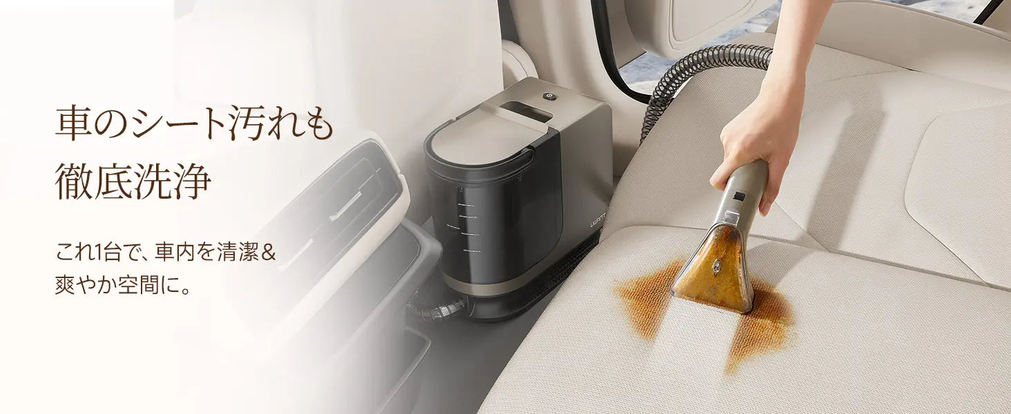 浮いた汚れを同時に吸引し、繊維の奥まで徹底洗浄。