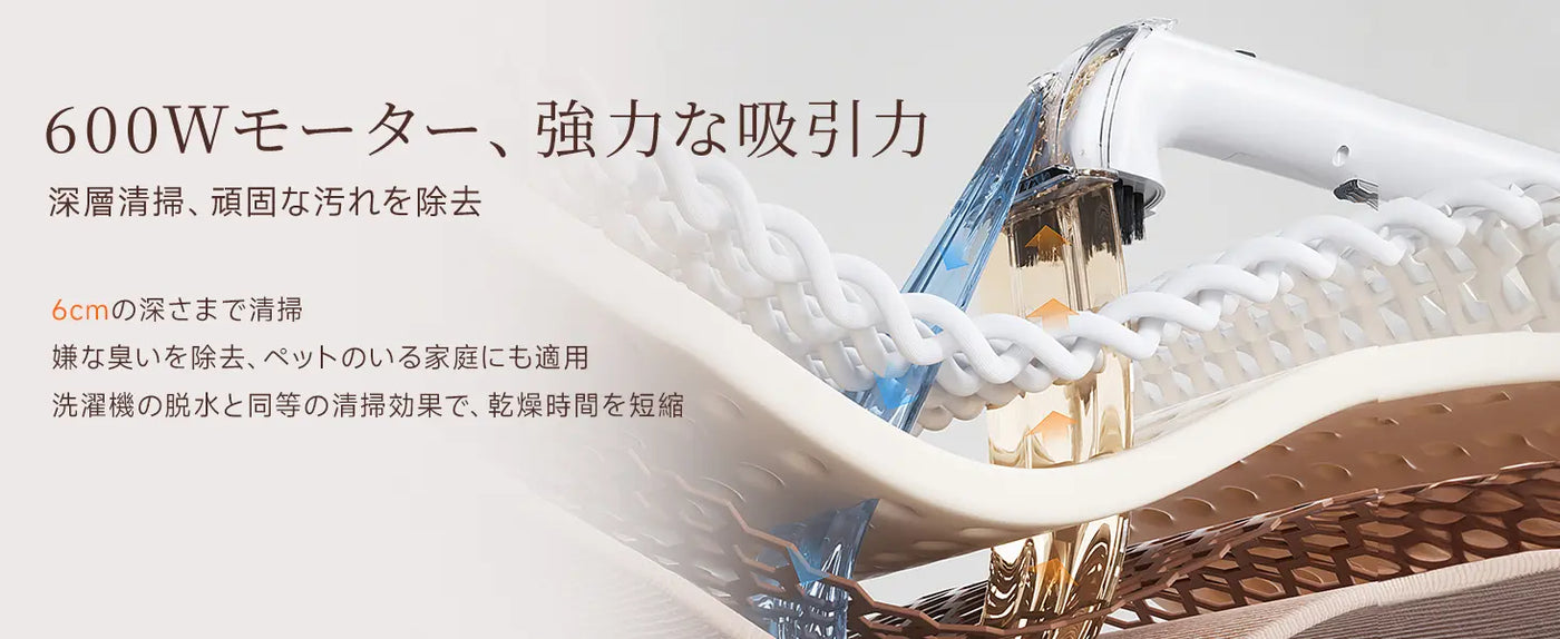• 18000Paの超強力吸引で深層の汚れまで瞬時に除去