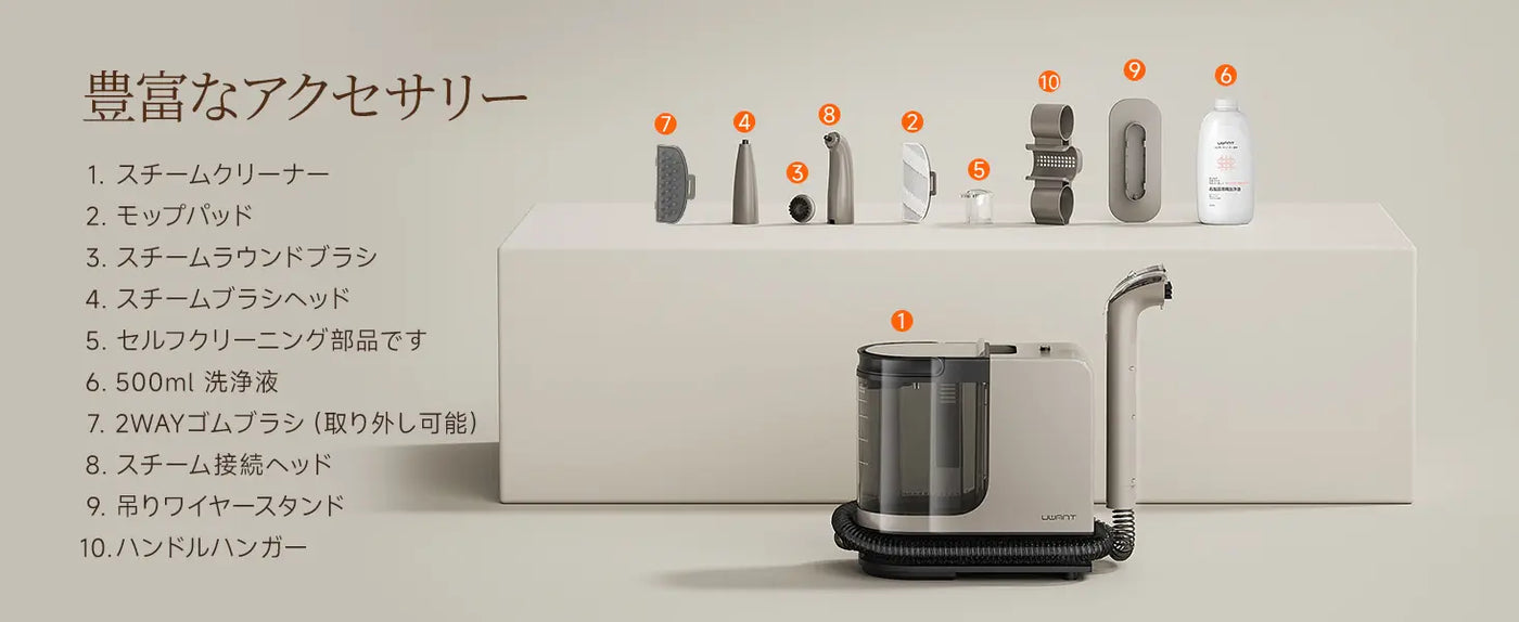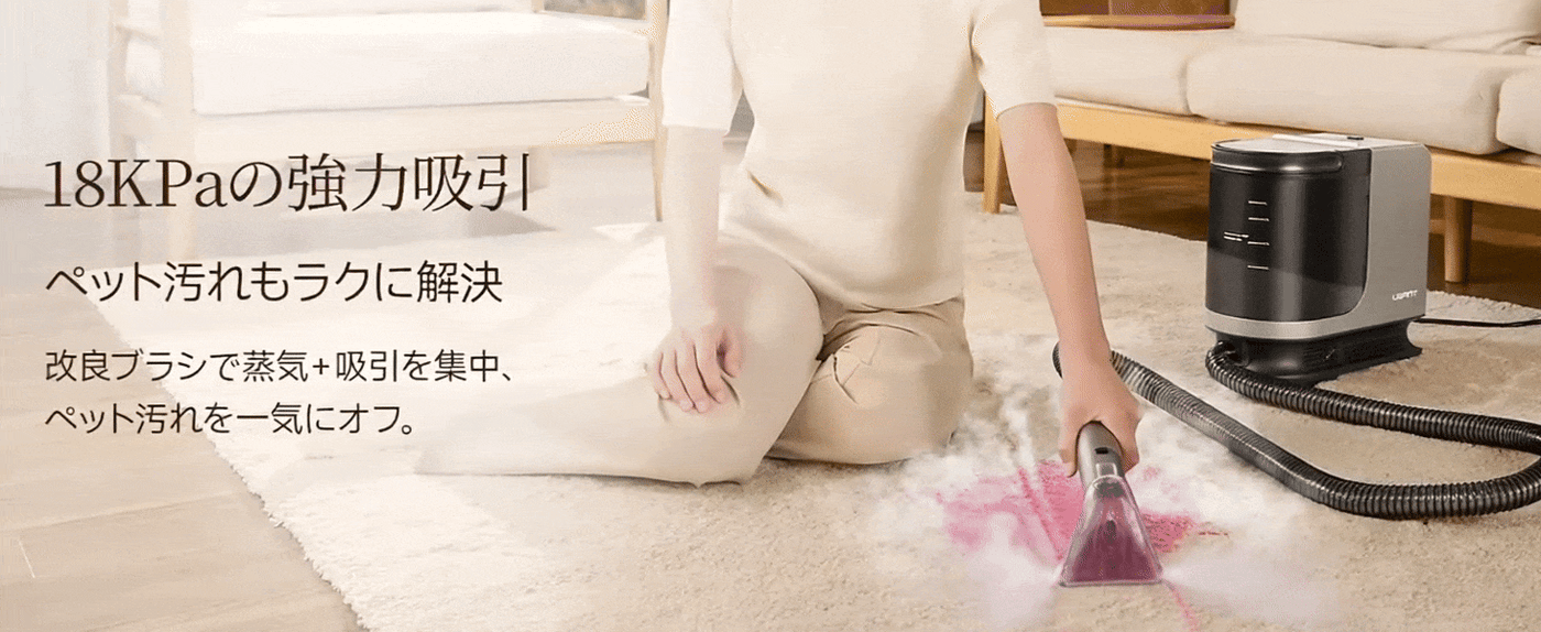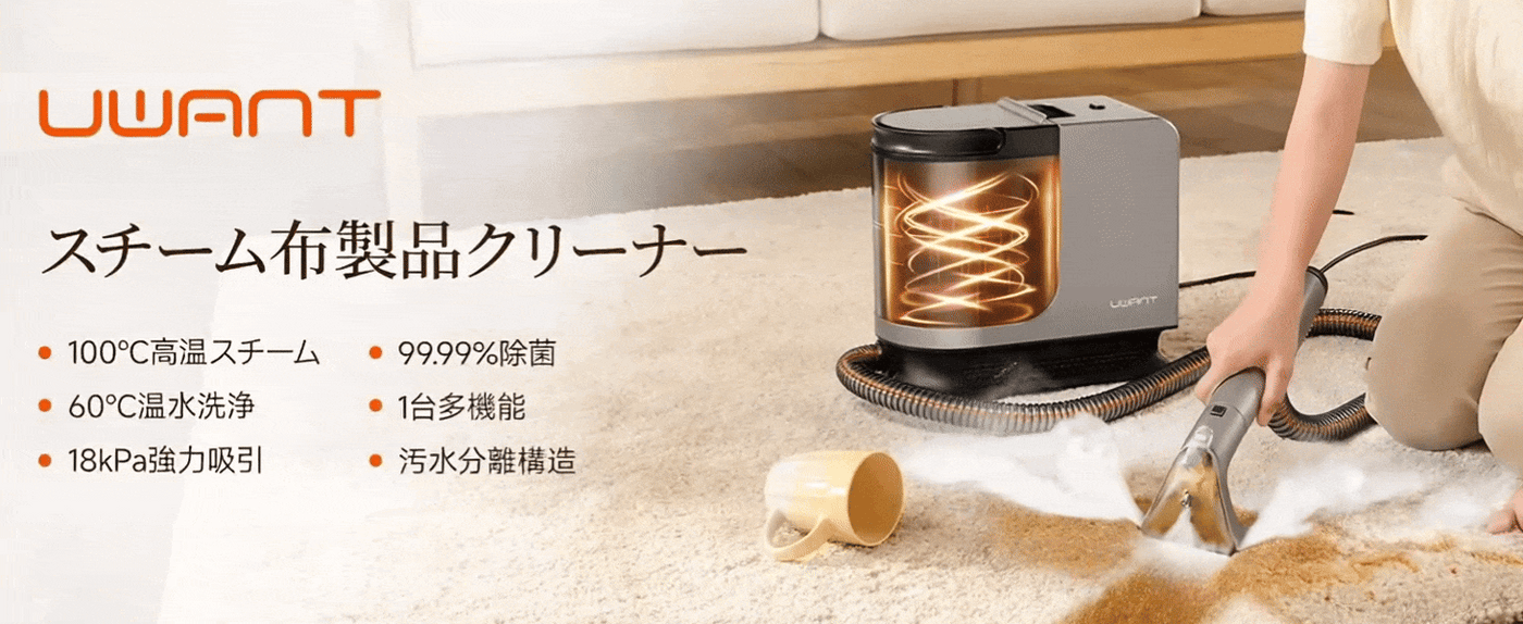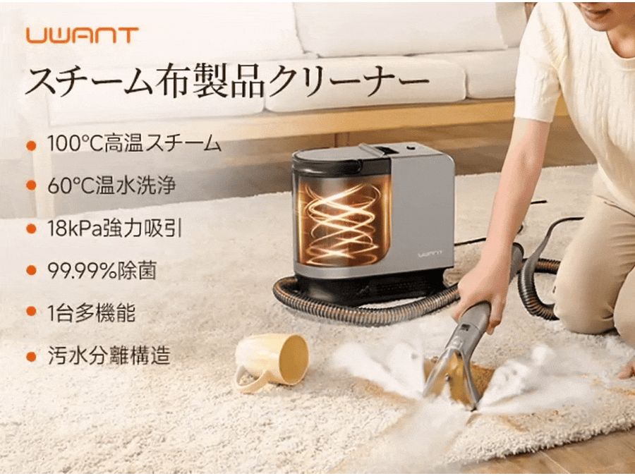 スチーム+吸引+洗浄を1台で。ソファも車内も、これ1台でプロの仕上がり。Uwant B400 高温スチームクリーナー|日本正規品