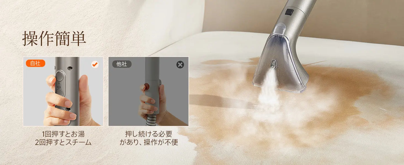 最大100℃のスチームで汚れを分解し、除菌・消臭にも優れています。