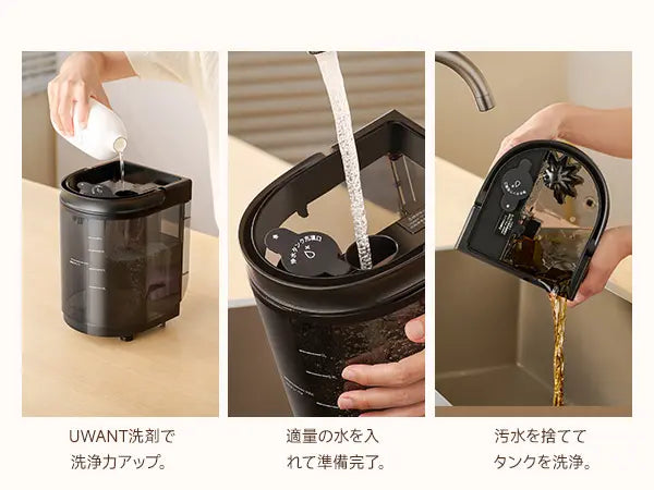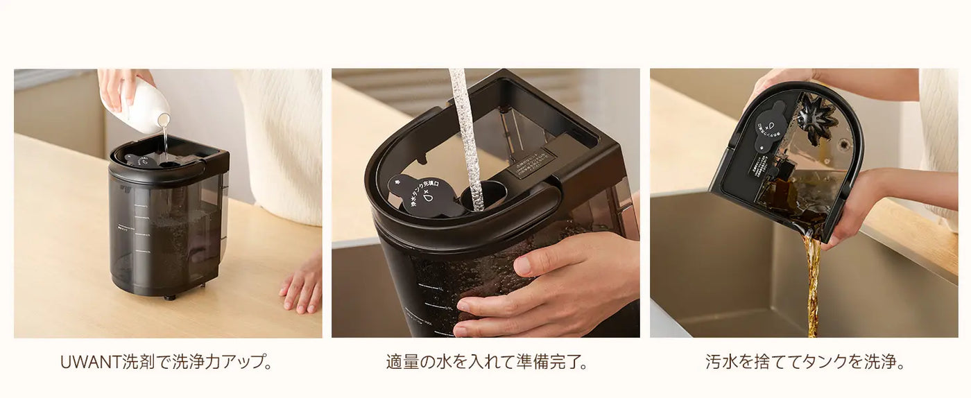 従来型クリーナーで課題となっていた「ホース内部の汚れ残り」。UWANT B400 は自動ホースクリーニング機能を搭載し、ホースキャップを閉じるだけで内部洗浄モードが自動起動。ホース内に残る汚れや細菌を効果的に洗い流し、イヤなニオイを防止します。手洗い不要で、毎回気持ちよく衛生的に使用できます。