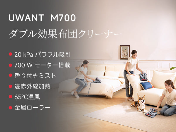 uwant M700 布団クリーナー|20,000Pa強力吸引 × 65℃熱風乾燥 UV除菌・超高速たたき・LEDディスプレイ搭載 マットレス/布団/枕/カーペット/ペット用マット対応