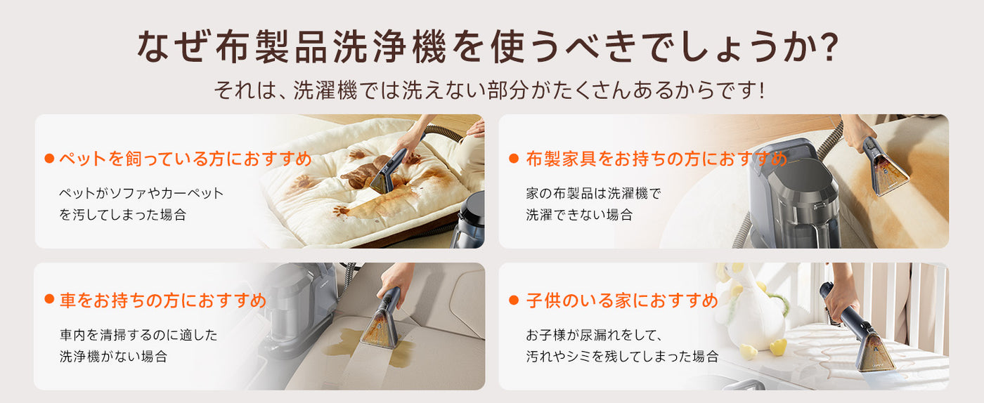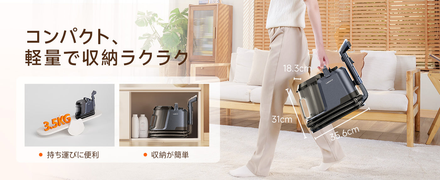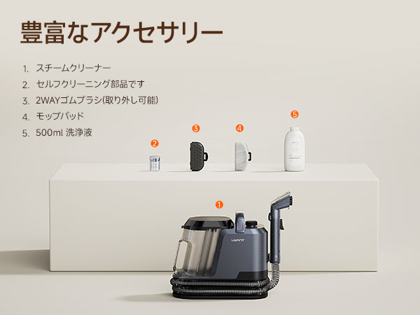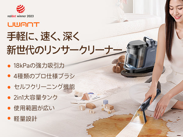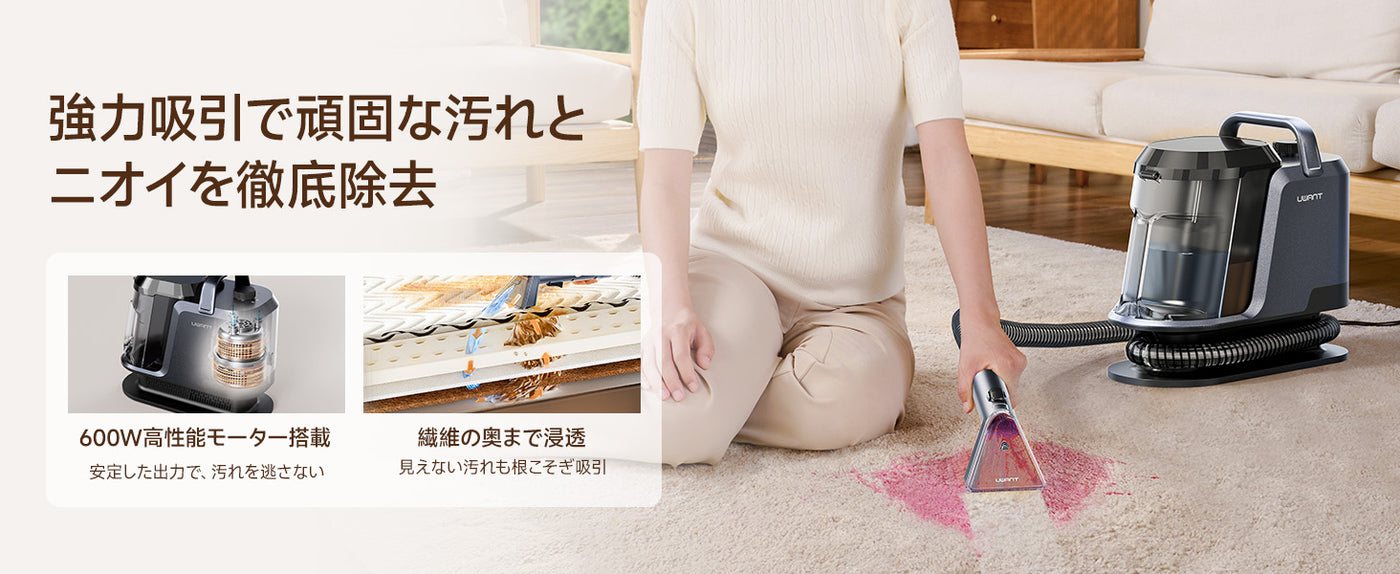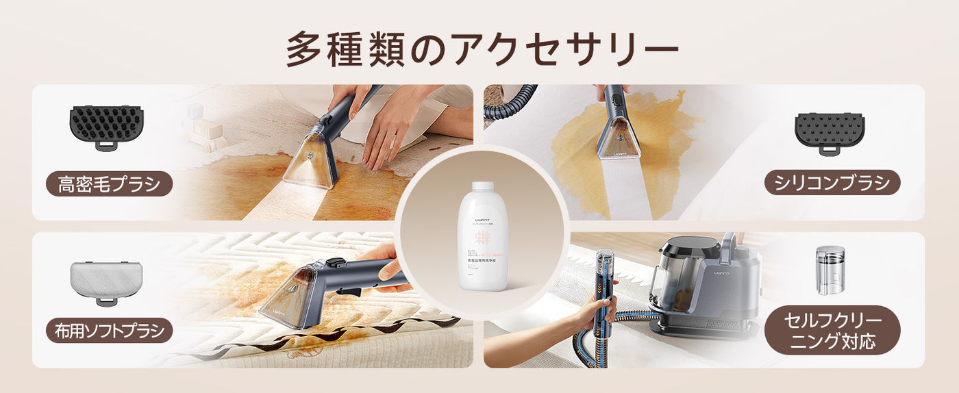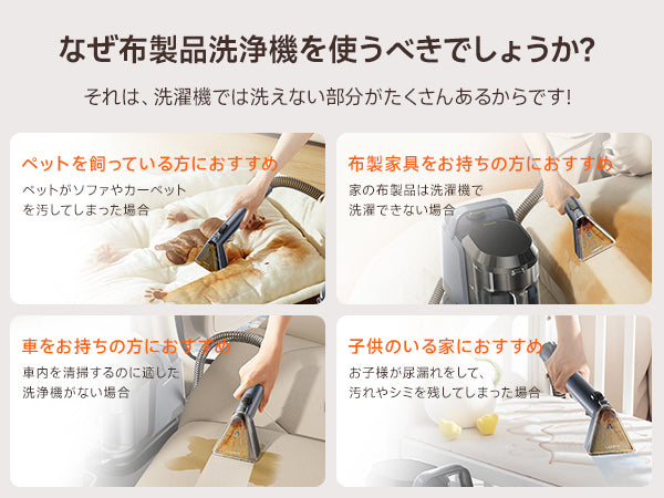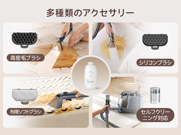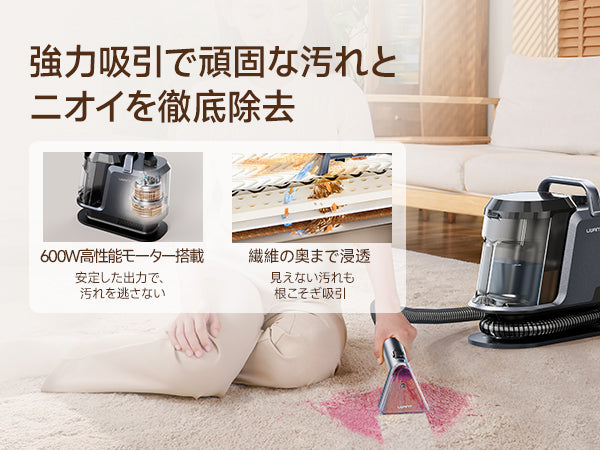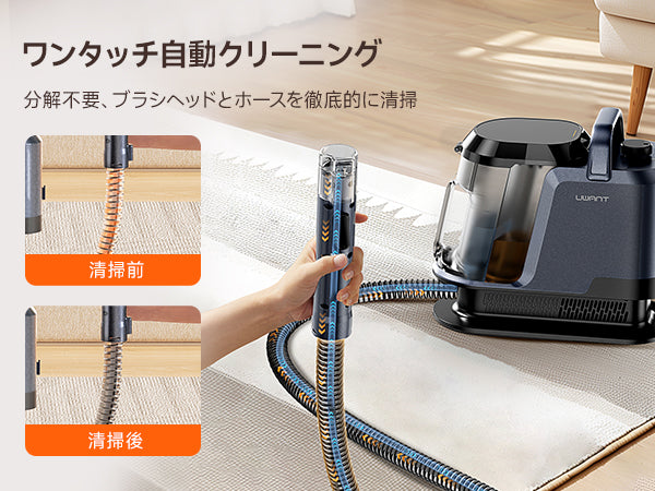 Y100 2-in-1 大容量水タンクカーペットクリーナー – 高吸引力・自動洗浄布製品/マットレス/ソファ/車内専用洗浄機 (3種のプロ仕様ブラシ・専用洗浄液付き)