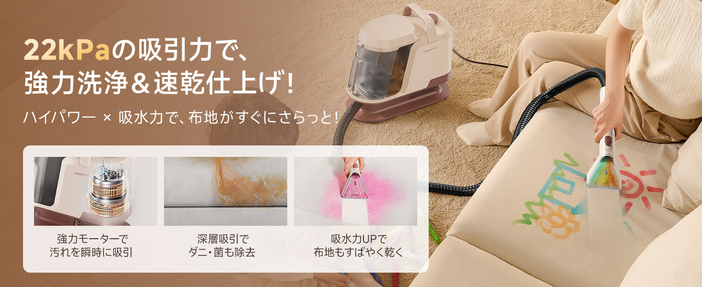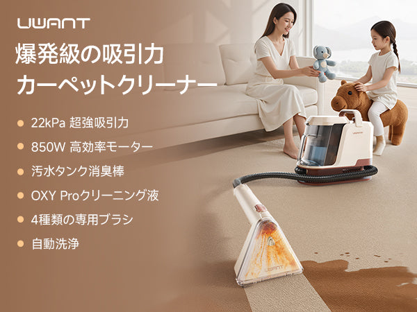 UWANT Y100Pro リンサークリーナー|22000Pa超強吸引 800Wスチーム洗浄機 カーペット・ソファ・車内対応